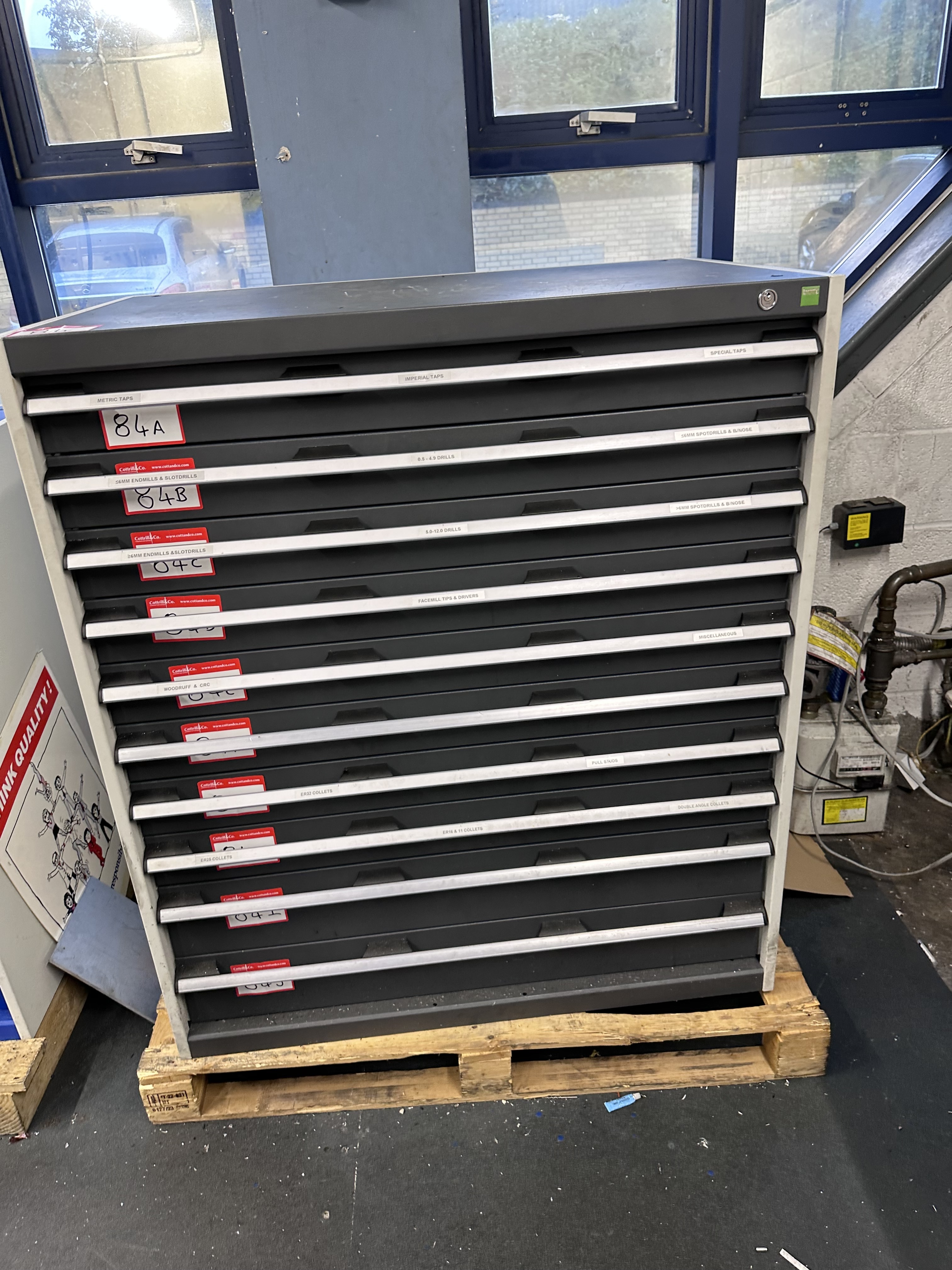 Lot 84 - Bott 10 Drawer Tooling Cabinet, Size 1050 x 650 x 1200mm (Cabinet Only) Lot 84A - Metric & Imp Taps in Various Sizes Lot 84B - Carbide & HSS Drills & Cutters 6mm