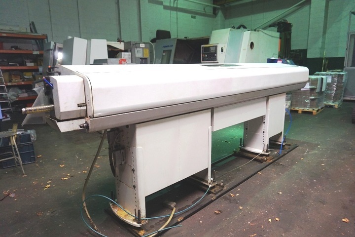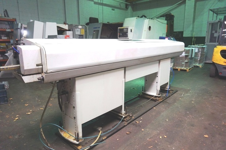 Gildermeister Twin 42 CNC Lathe, Twin Spindle, Collet Chucks, Twin 12 Station Turrets, Swarf Conveyor, S/No. 07300001601 with Boss S45YE Bar Feed, Lemca Control on Barfeed. S/No. 020413GA05 (2004)