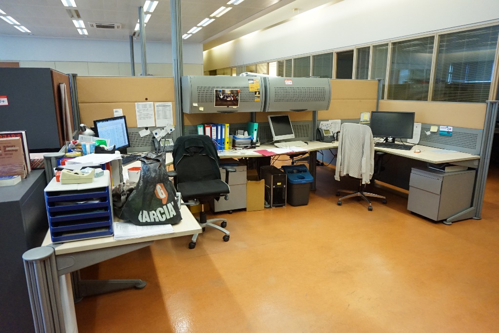 (2) x Desks with Over Hanging Cupboards, Rise and Fall Table and (2) x Stationery Cabinets (Excluding Computers, Telephones and Electrical Equipment)