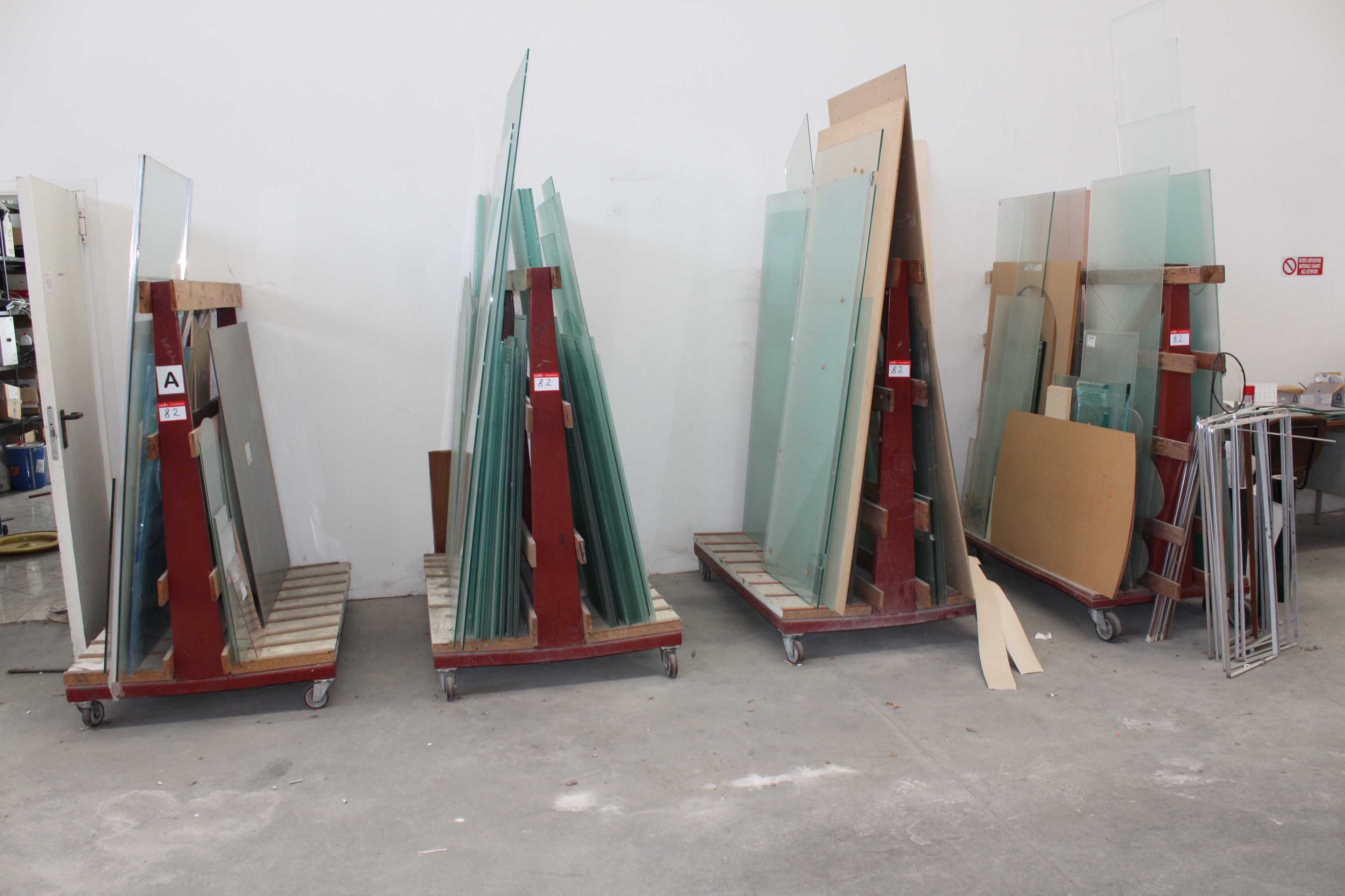 Lotto 82: (4) x 1500 x 1100mm Steel Double Sided Portable Glass Transporters with Contents of Glass