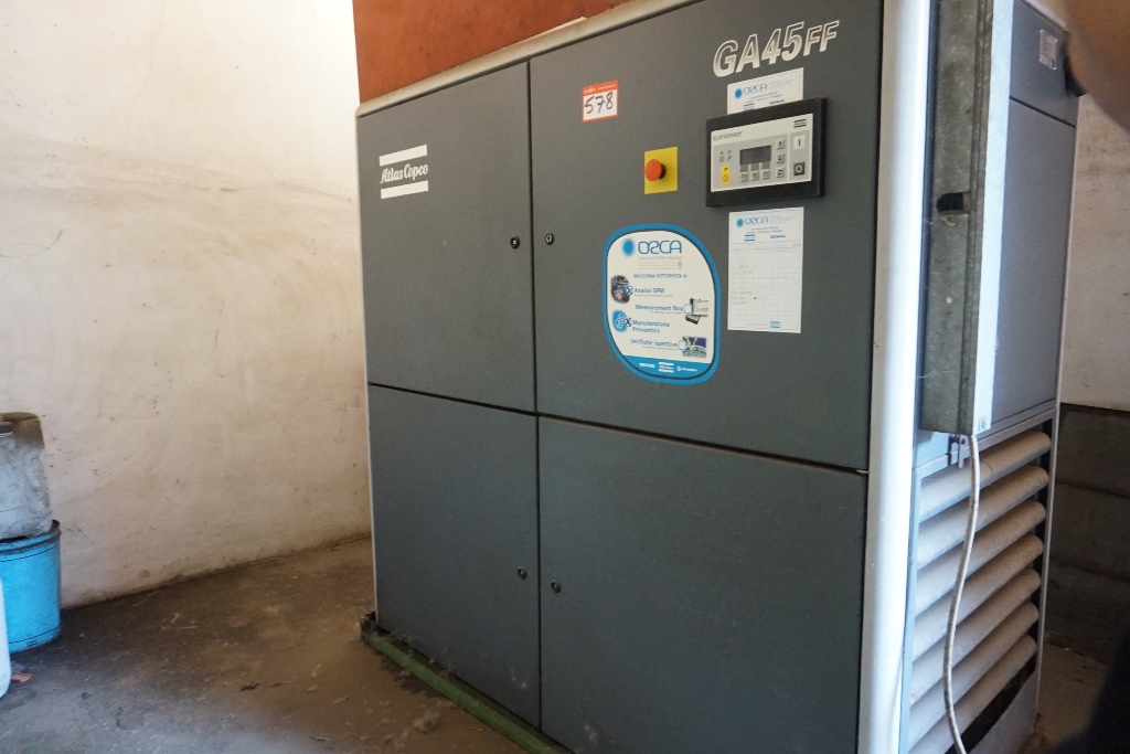Lotto 578: Atlas Copco GA45FF Compressor, Max Pressure 7.5 Bar