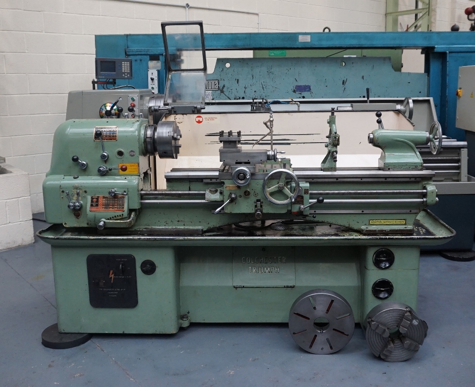 Colchester Triumph 7 1/2" Gap Bed Centre Lathe. Swing Over Bed 15". Distance Between Centres 50". Spindle Speeds 30 - 1200rpm. 3 Jaw Chuck. 4 Jaw Chuck. 3 Point Steady.