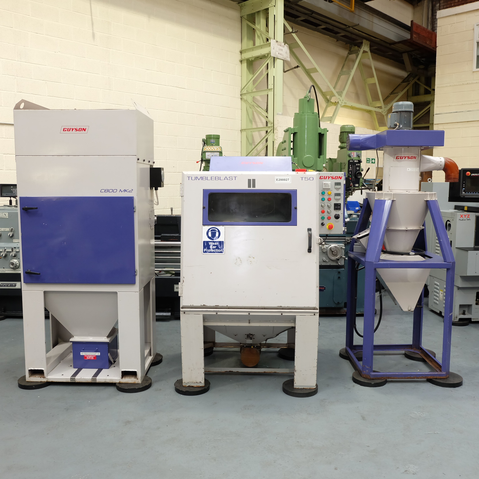 Guyson Type T50 Tumble Blast System, Drum Diameter 500mm. With Guyson Type C800 MK2 Dust Collection Unit and Guyson Type CY600/12 Cyclone. Year 2008.