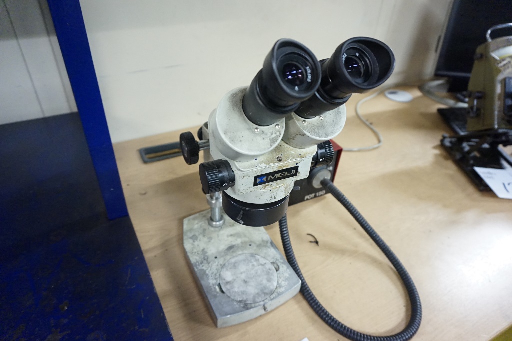 Lotto 123: Meiji EMZ Microscope with FOT 150 Fibre Optic Light