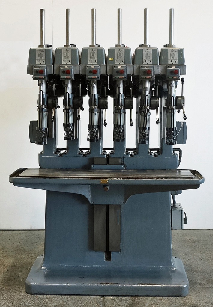 Pollard Type 100 A/6. 6 Spindle Pillar Drill, Table Size 47" x 10", Rise And Fall, Spindle Speeds 660 to 3740, Throat 8"