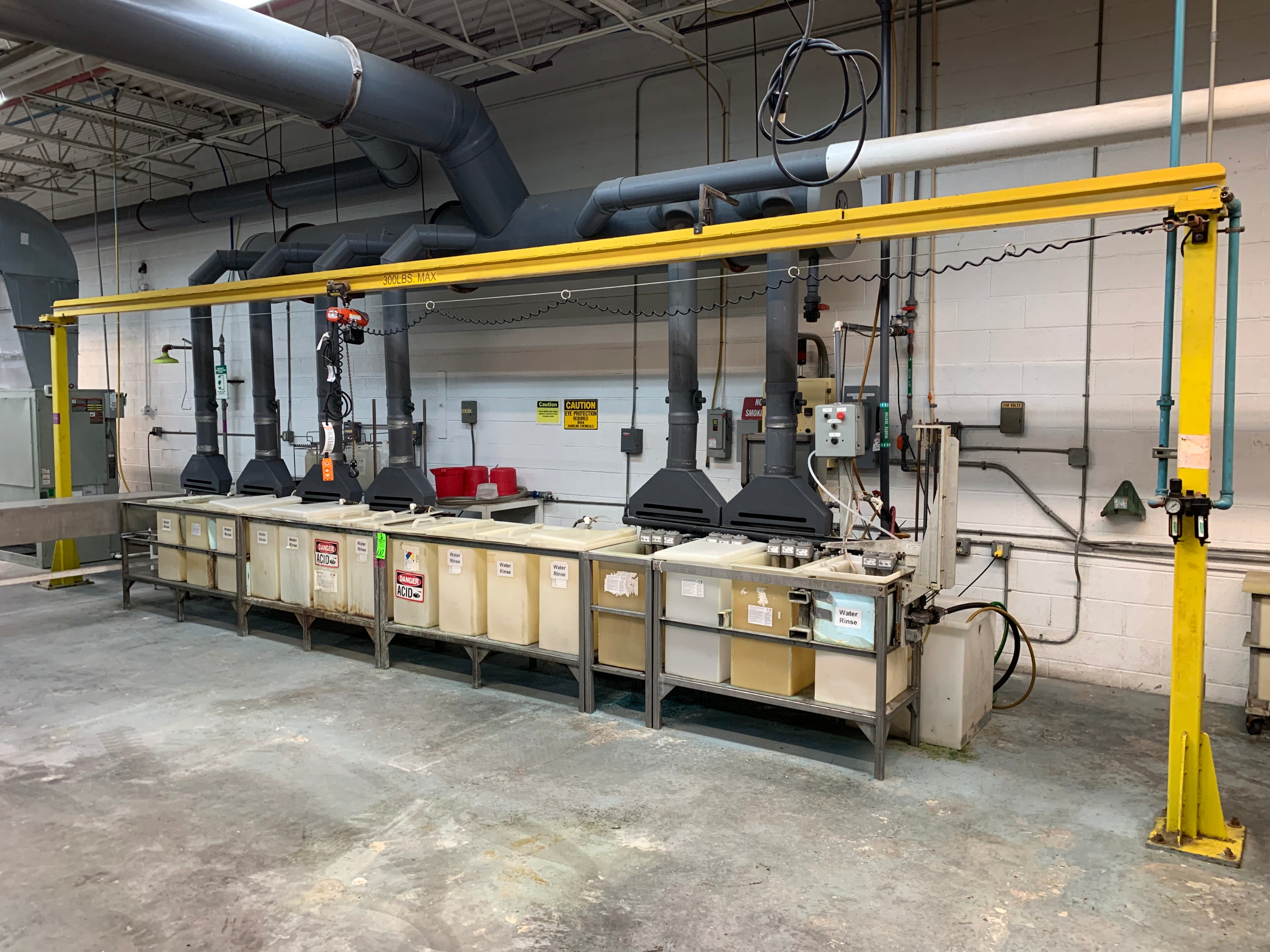 R&D NICKEL Plating Line, w/ 15 Tanks, Gantry Crane Loading System w/ CM Electric Hoist
