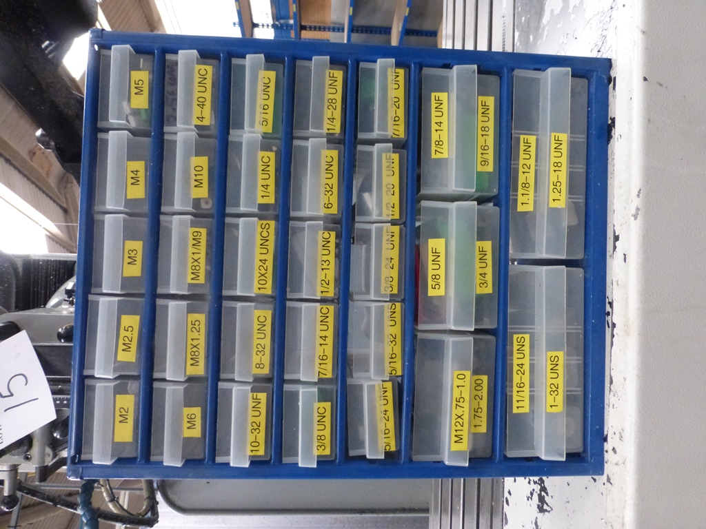 Steel Frame 30 Tray Storage Rack with Contents including metric/unc/unf taps.