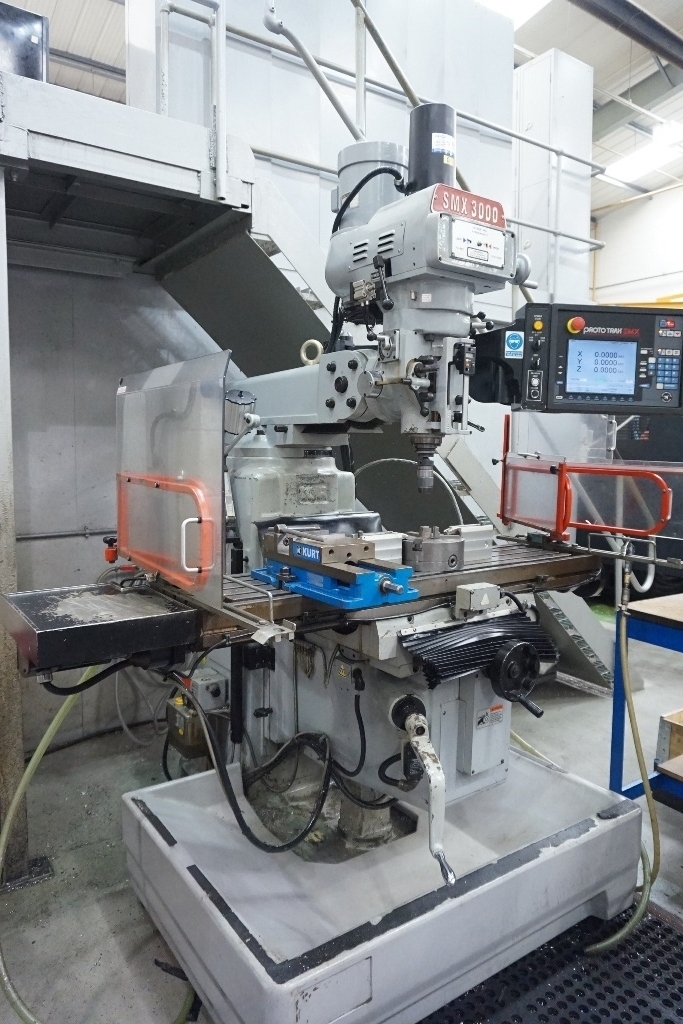 XYZ 3000 Mill with Proto Trak SMX Control System, Spindle Speeds Low Range 70-460rpm, High Range 500-3000rpm, Table dimensions 12”x 54”. S/No. 11427 (2011)
